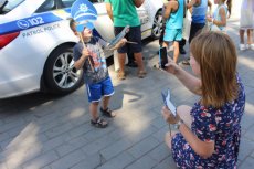 Особливо до душі припала перехожим вікторина на знання правил дорожнього руху: якщо людина відповідала правильно на запитання – отримувала за це цукерку.