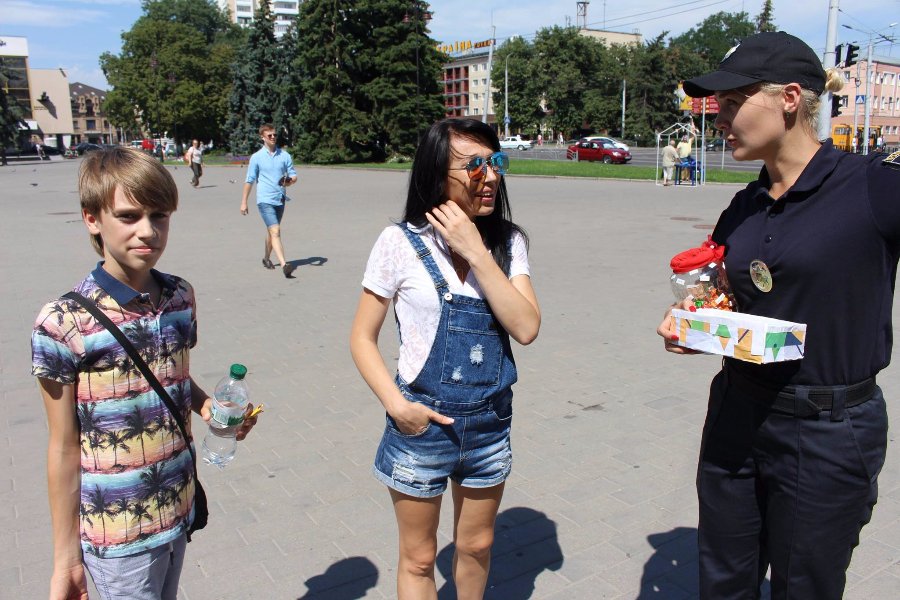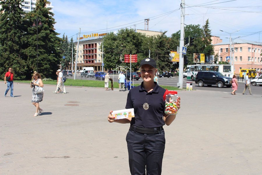 У Луцьку патрульні роздавали в центрі міста цукерки