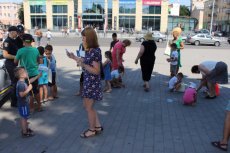 До участі в акції волонтери проекту «Меценати для солдата» залучили кілька десятків діток полеглих бійців, які приїхали до Луцька на ІІІ з’їзд родин Небесного Легіону Волині під час фестивалю "Бандерштат".