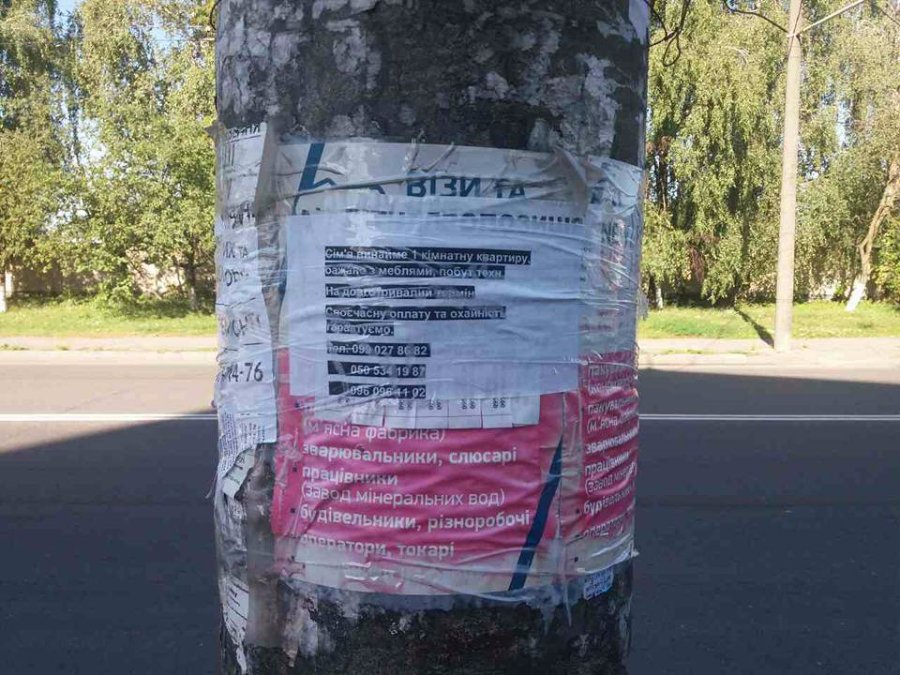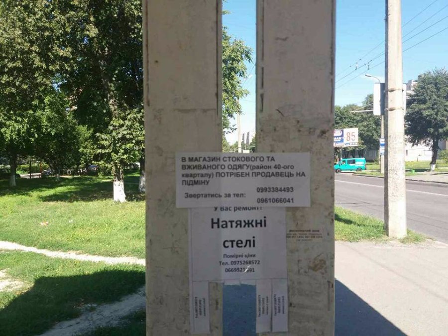 "Електроопори, дорожні знаки, фасади будинків, паркани та зупинки знову заклеєні стихійними оголошеннями", - йдеться в дописі.