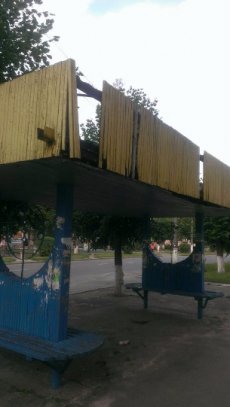 «У такому стані автобусні зупинки на центральній вул міста, від маг. Вечірній і наступні дві біля кладовища. Коли вже цей совковий дизайн нарешті кане в ріку забуття Лєту?...» – коментує світлини вона.