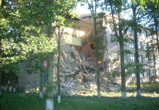 У 4-поверховій будівлі навчального корпусу зруйновано частину (180 м2) зовнішньої фасадної самонесучої стіни з першого по четвертий поверх. Площа руйнування становить приблизно 8% від загальної площі, існує загроза подальшого руйнування.