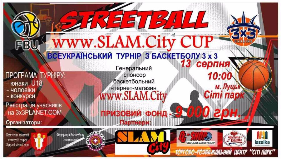 В неділю, 13 серпня, на спортивному майданчику «Сіті Парк» проводитиметься етап чемпіонату України з баскетболу 3х3.
