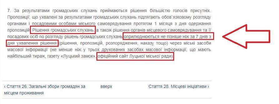 2 серпня 2017 р. відбулися громадські слухання. Згідно Статуту міської громади «рішення громадських слухань ... оприлюднюються не пізніше ніж за 7 днів з дня ухвалення...». Отже, не пізніше 9 серпня протокол громадських слухань має бути розміщений на офіційному веб-сайті ради», - йдеться у повідомленні.