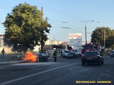 Посеред вулиці в Луцьку спалахнув автомобіль