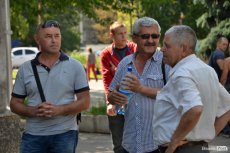 10 серпня о 9.00 тут вже було людно - прийшли журналісти та приїхала поліція. Ближче до обіду почали підходити й люди, які підтримують Олександр Тиводара.