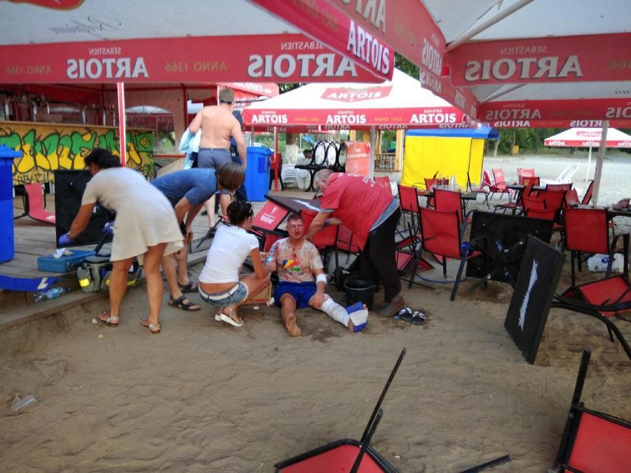 «З того боку вони прилетіли і почали лупасити тут всіх – відпочивальників, дітей, усіх поспіль. Була стрілянина, і вони були вже із каменями, трощили тут все, кидали їх на намети і на людей. Уже не на господаря, не на бармена, а на людей. Господаря кафе забрали «швидкою», його били меблями та битами. А син його оборонявся», – розповів Геннадій, місцевий житель.