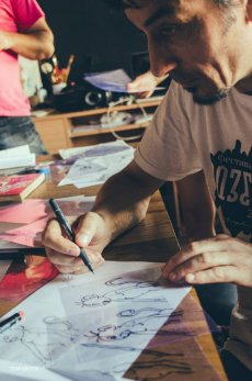 Усім учасникам роздали прозорі плівки, маркери та коректори за допомогою яких вони створювали власні персонажі, а згодом і міні-мультфільми. Присутні малювали на кожній плівці персонажа у різних фазах руху, а потім анімували їх, використовуючи програму «Stop motion», також можна було використовувати предмети побуту: чайник, пензлики, миски, вази, тощо.