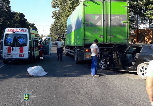 Після удару автомобіль в’їхав у припарковану вантажівку, передня частина легковика значно ушкоджена. Постраждав також пасажир Peugeot.