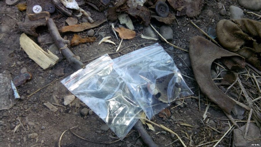 Всього за один день у викопаній траншеї було виявлено близько двох мішків людських кісток і предметів побуту, серед яких є елементи жіночого та дитячого одягу.