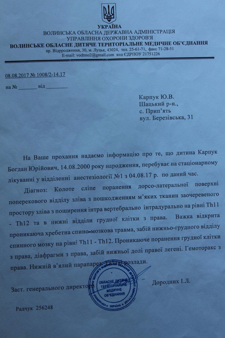Швидко і оперативно спрацювали медики бригади швидкої допомоги з Шацька, які доставили юнака до Любомльської лікарні. Звідти його транспортували до обласної дитячої лікарні.
