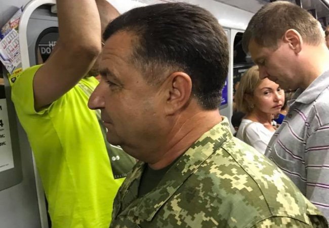 Міністр оборони України Степан Полторак на репетицію параду, яка відбувалася на Майдані Незалежності в Києві, приїхав у метро.