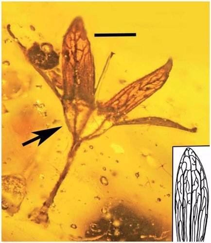 Американські дослідники з Університету Орегон знайшли унікальні квіти у шматкові бурштину. Вік рослини – приблизно 100 мільйонів років.