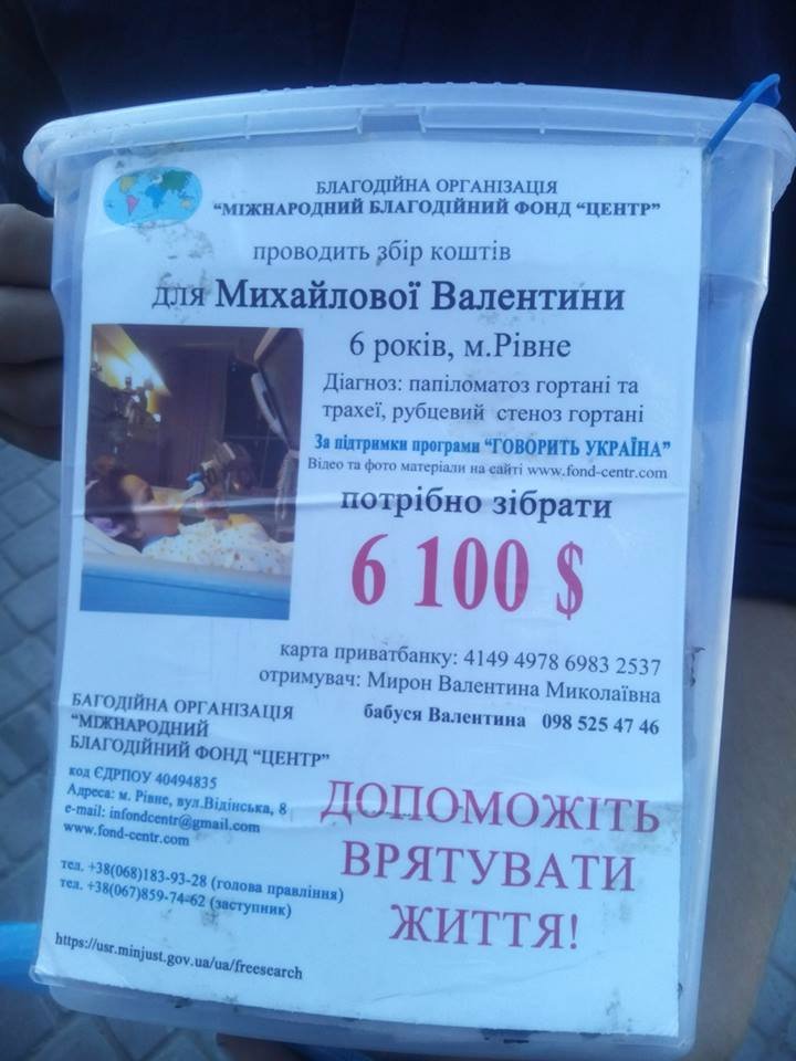 «У місті працюють псевдоволонтери котрі викрали документи в благодійному фонді «Центр» м.Рівне та здійснюють незаконний збір коштів у нашому місті. Ці особи працювали на даний фонд, після чого викрали документи та привласнюють кошти які збирають.