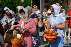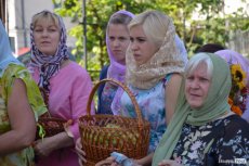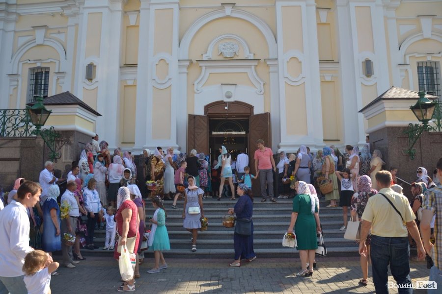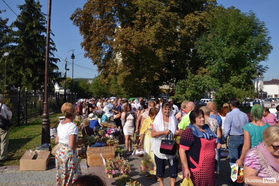 Більше тисячі людей прийшли до Собору, щоб освятити кошики із яблуками, фруктами, медом та квітами. До священиків вибудувалася черга, яка починалася на Театральному Майдані міста.