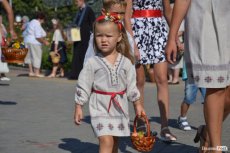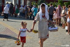 Обабіч Собору люди продавали кошики, квіти, фрукти, мед, вінки та жмути колосся жита і пшениці.