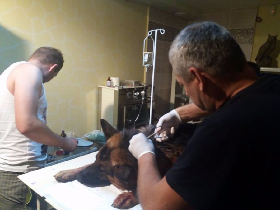Ветеринар, власник клініки “Айболіт” Сергій Марчук, коли йому повідомили про поранення собаки, терміново відкрив клініку та прооперував його.