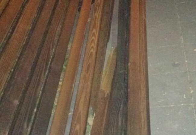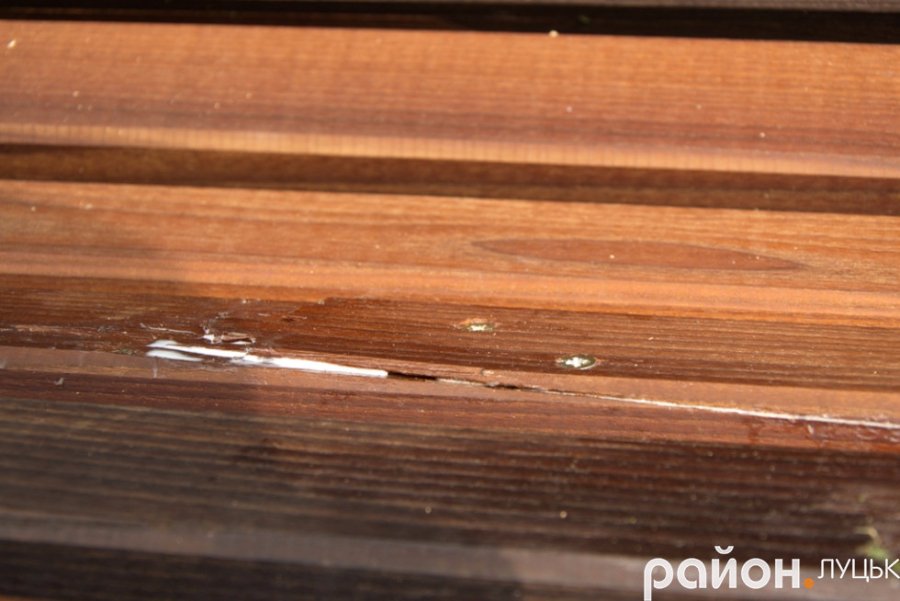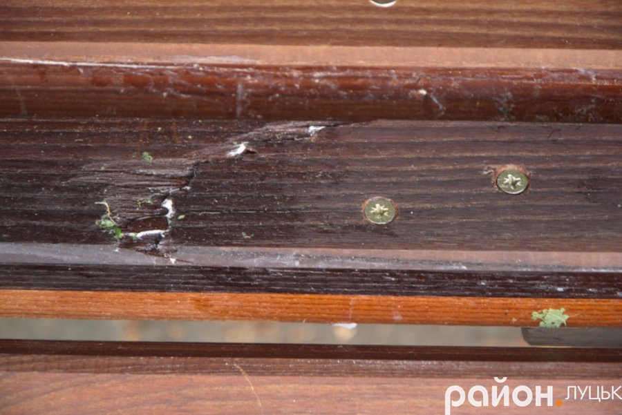 Нову дизайнерську лавку, яка і доби не простояла в Центральному парку, відремонтували саморізами і клеєм.