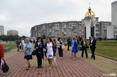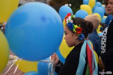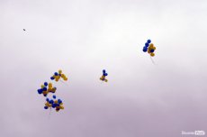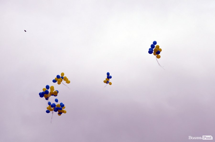 Наприкінці сотні синіх та жовтих кульок злетіли у небо, а учасники урочистості з маленькими прапорцями у руках вирушили у різні частини міста, аби наповнити його синьою та жовтою барвами.