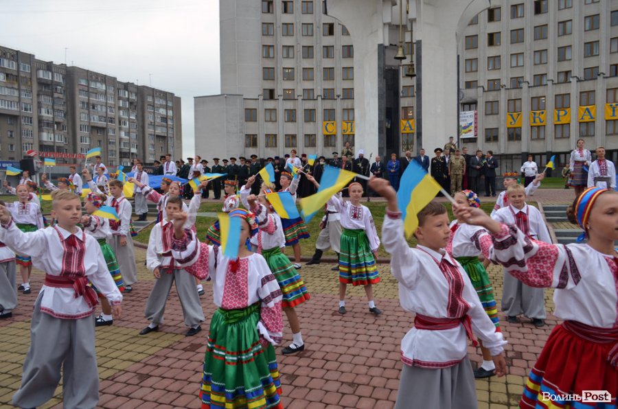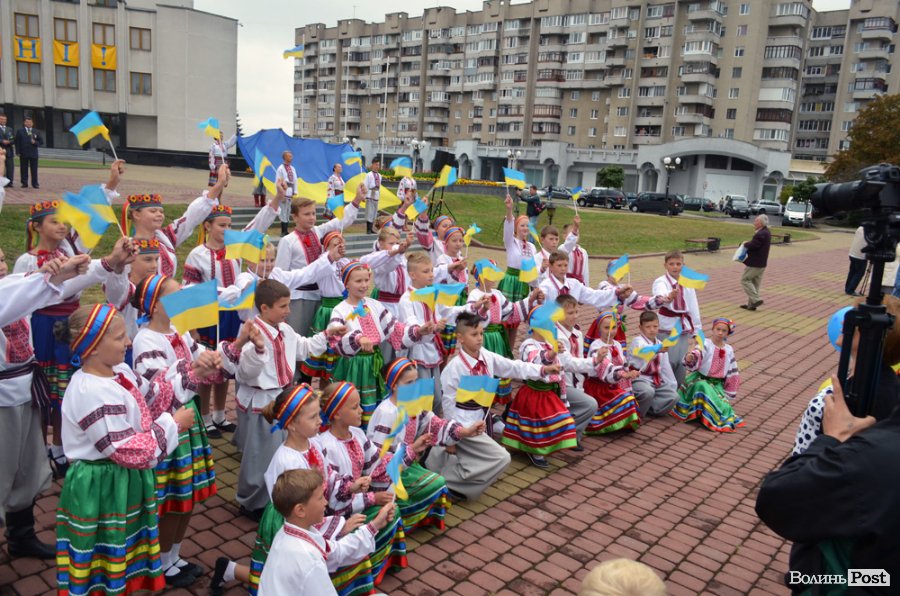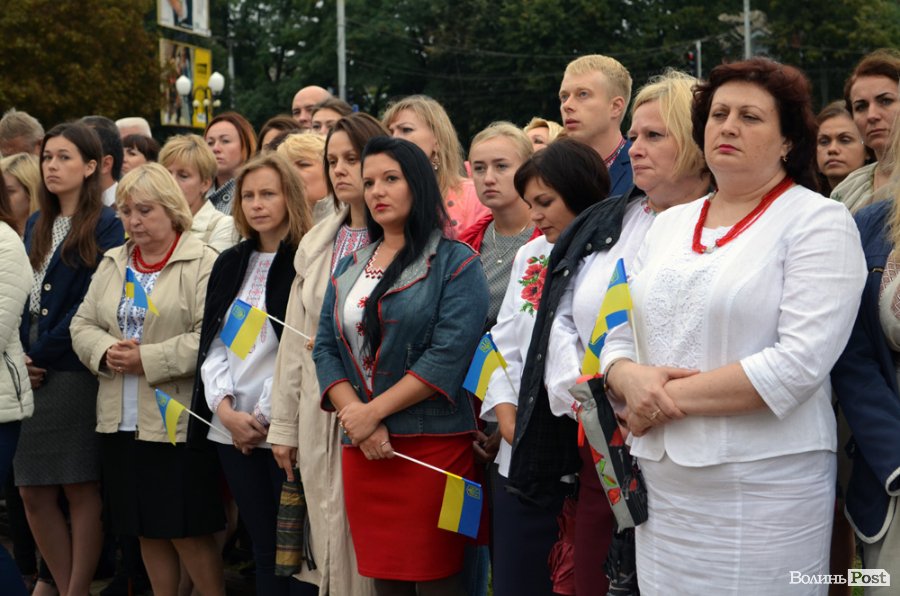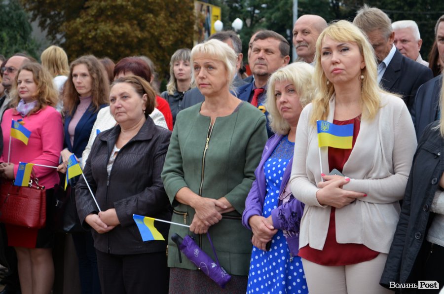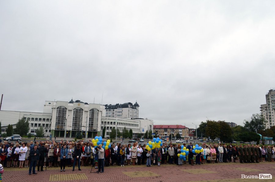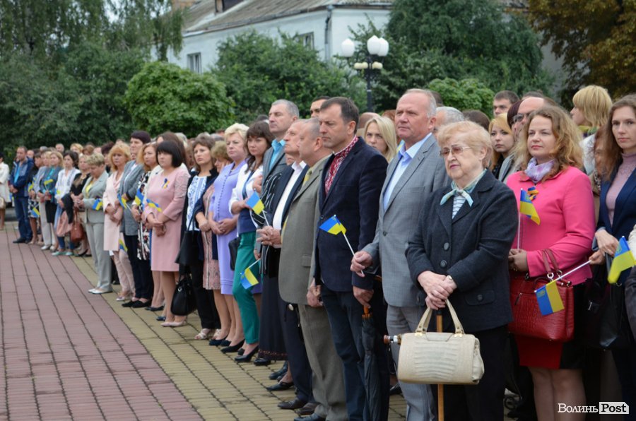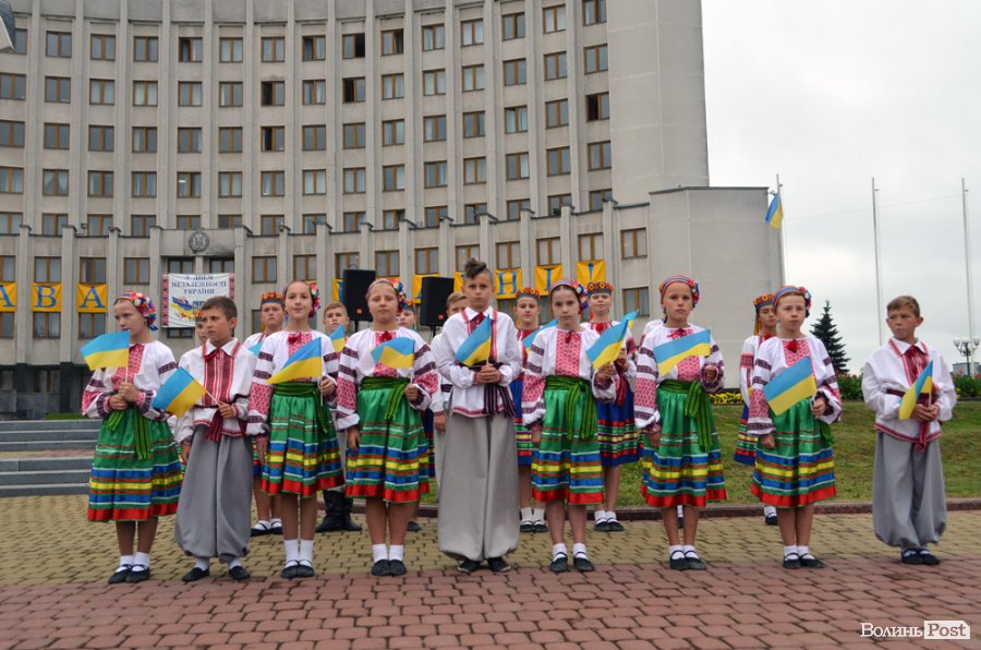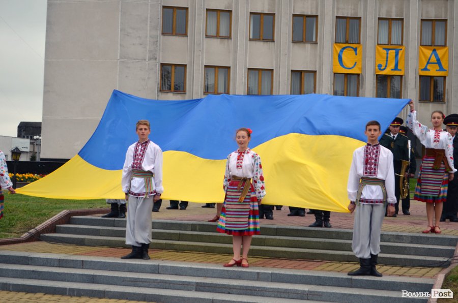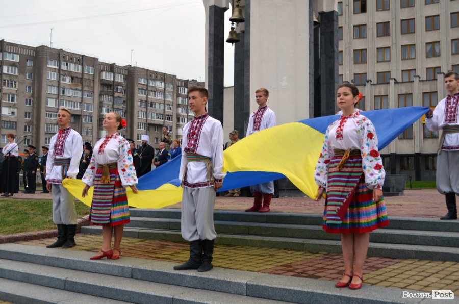 З самого ранку на площі перед облдержадміністрацією зібралися десятки людей – представники духовенства, силових відомств, чиновники та чимало лучан, які тримали у руках маленькі синьо-жові прапорці. Обабіч вишикувалися стрункі нацгвардійці та трохи схвильвані діти у національних костюмах - затамувавши подих, усі спостерігали за урочистою церемонією підняття прапора.