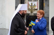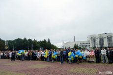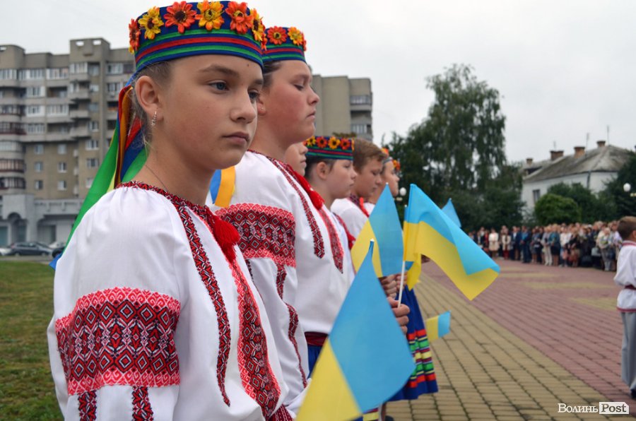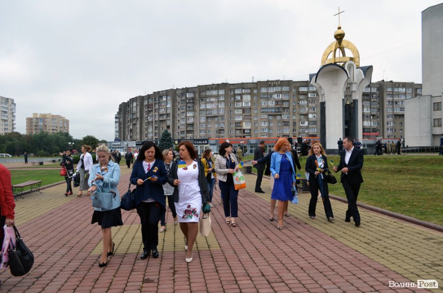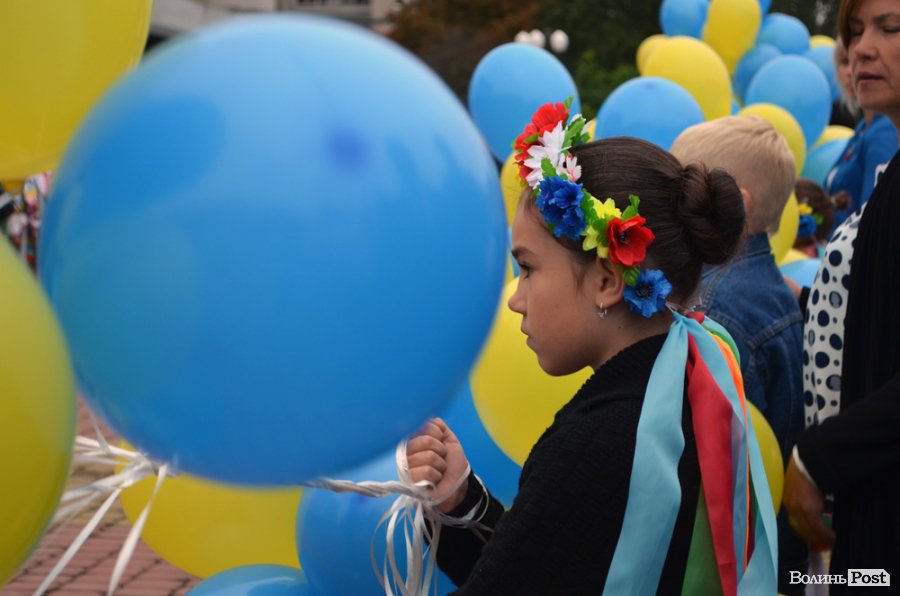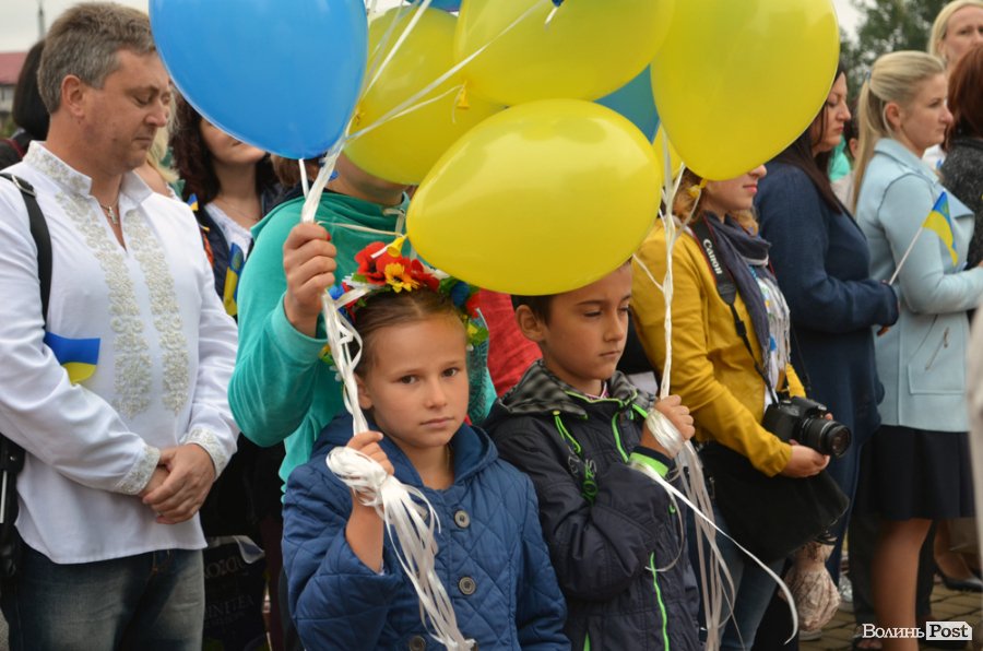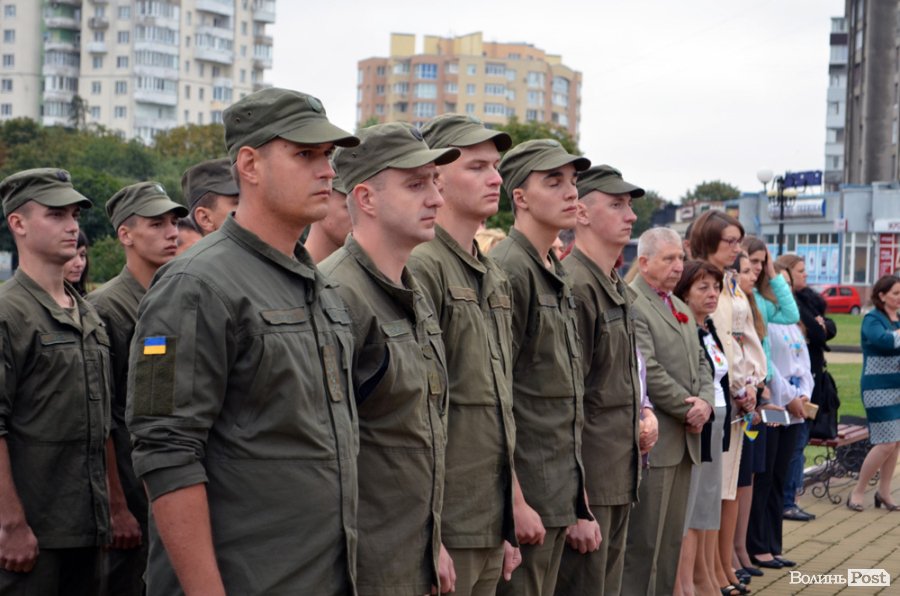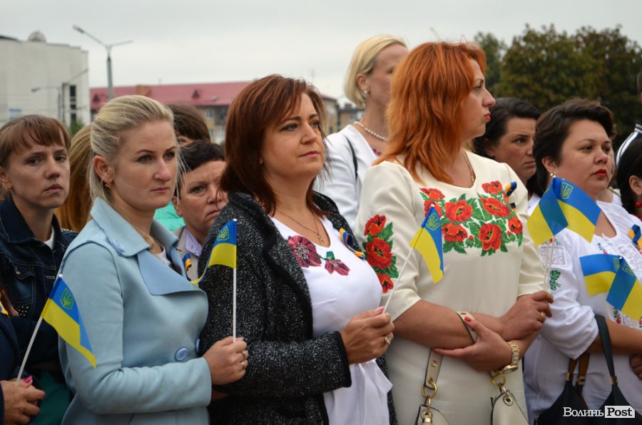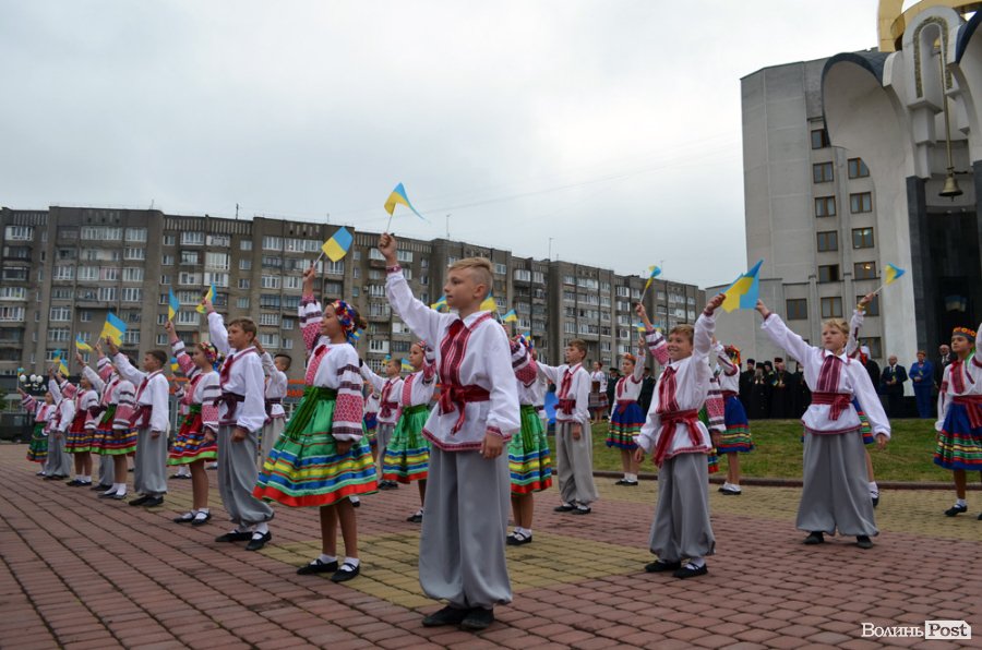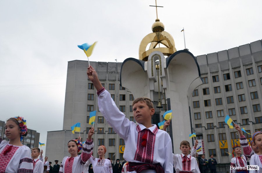 З самого ранку на площі перед облдержадміністрацією зібралися десятки людей – представники духовенства, силових відомств, чиновники та чимало лучан, які тримали у руках маленькі синьо-жові прапорці. Обабіч вишикувалися стрункі нацгвардійці та трохи схвильвані діти у національних костюмах - затамувавши подих, усі спостерігали за урочистою церемонією підняття прапора.