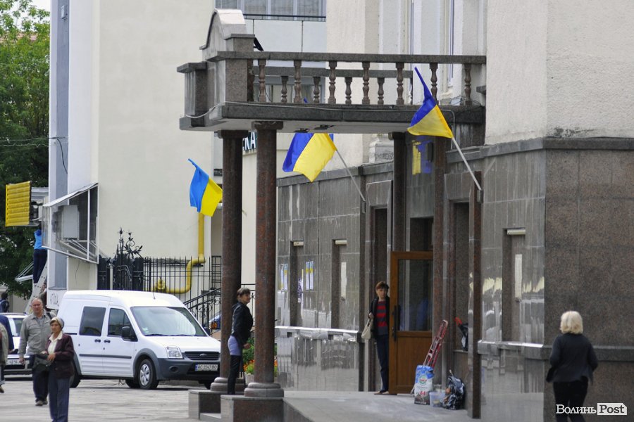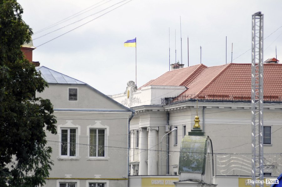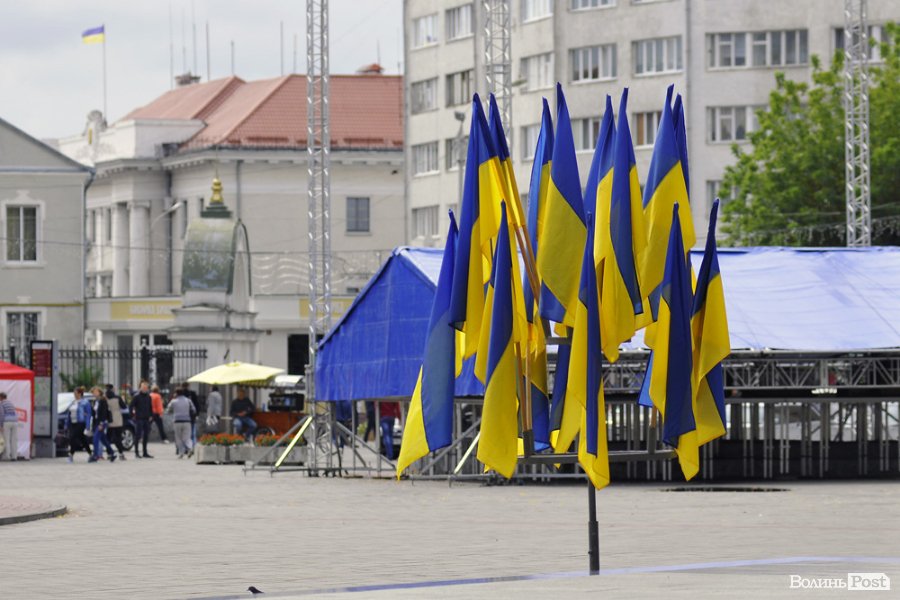 Традиційно "вбрався" у великі прапори Драматичний театр у самому центрі міста, а колони лялькового театру та Східноєвропейського національного університету прикрасили великими полотнищами синього та жовтого кольорів. Ранок у місті також розпочався із урочистого підняття стягів під музичний супровід.