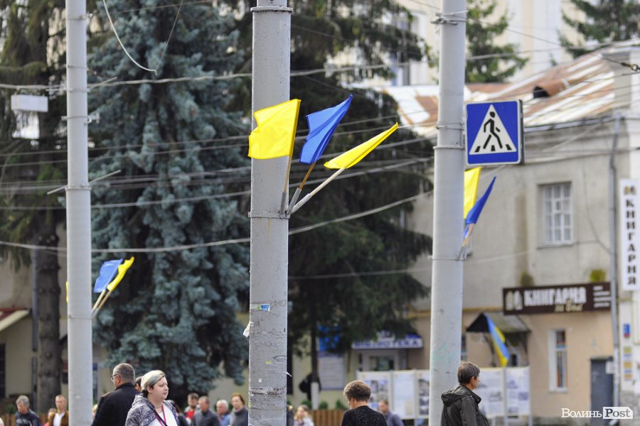 Для Луцька прикрашати місто в кольори національного прапору теж стало добрим звичаєм. Національний символ у ці дні можна побачити скрізь - у вітринах магазинів, на вікнах маршруток та атомобілів і у руках перехожих. Дехто з лучан вивісив прапор на балконі чи вікнах, аби у цей день гордо заявляти: ми - українці, і пишаємося своїм державним символом.