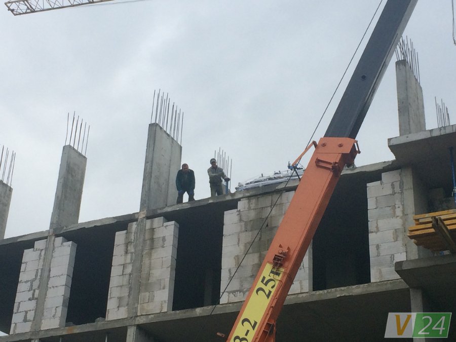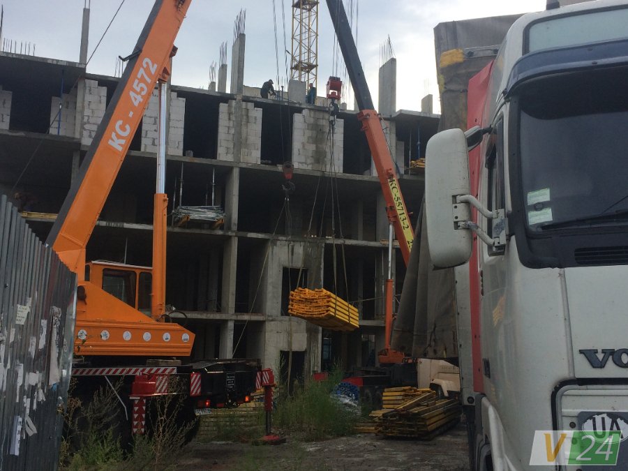 На будмайданчик 23 серпня заїхали дві вантажівки, обладнані підйомними кранами, а також з десяток працівників, які розбирають риштування на будинку і вантажать їх на фури, - повідомляє Волинь24.
