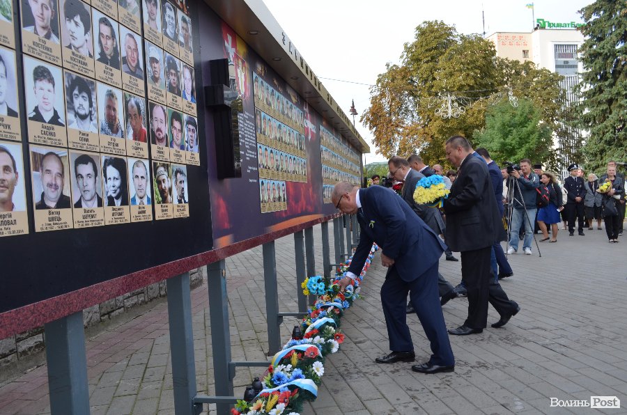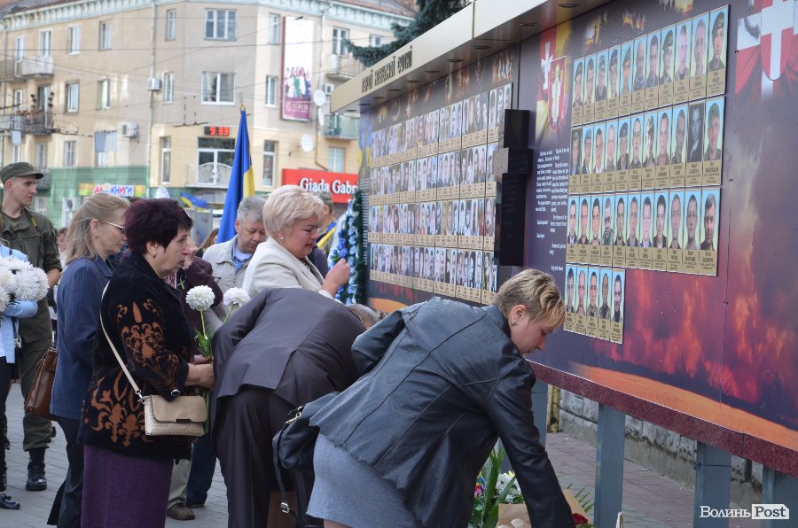 У Луцьку вшанували пам’ять загиблих Героїв Небесної Сотні та воїнів АТО. Біля стели загиблим героям відбулась панахида, а потім покладання квітів.