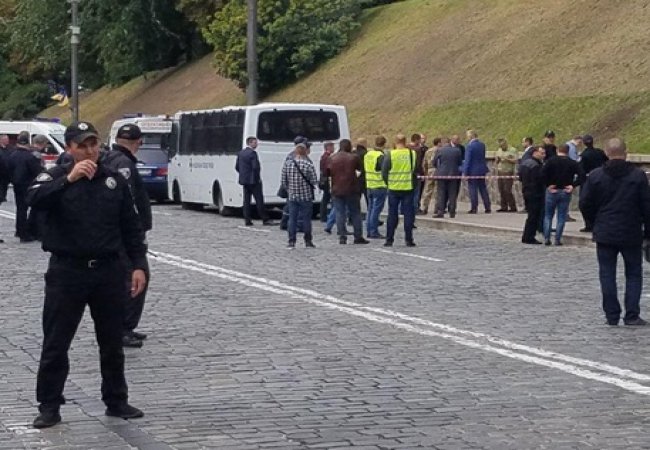 Водночас в соцмережах пишуть про теракт. "Щойно на вул. Грушевського був "теракт": кидали вибухові пакети по машині азербайджанського посольства ... не докинули !!!! постраждали жінка і хлопець які йшли поруч", - пише у Facebook Віталій Грузинов.
