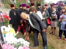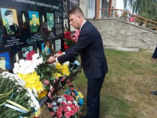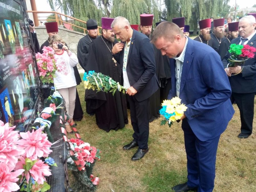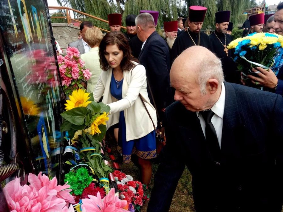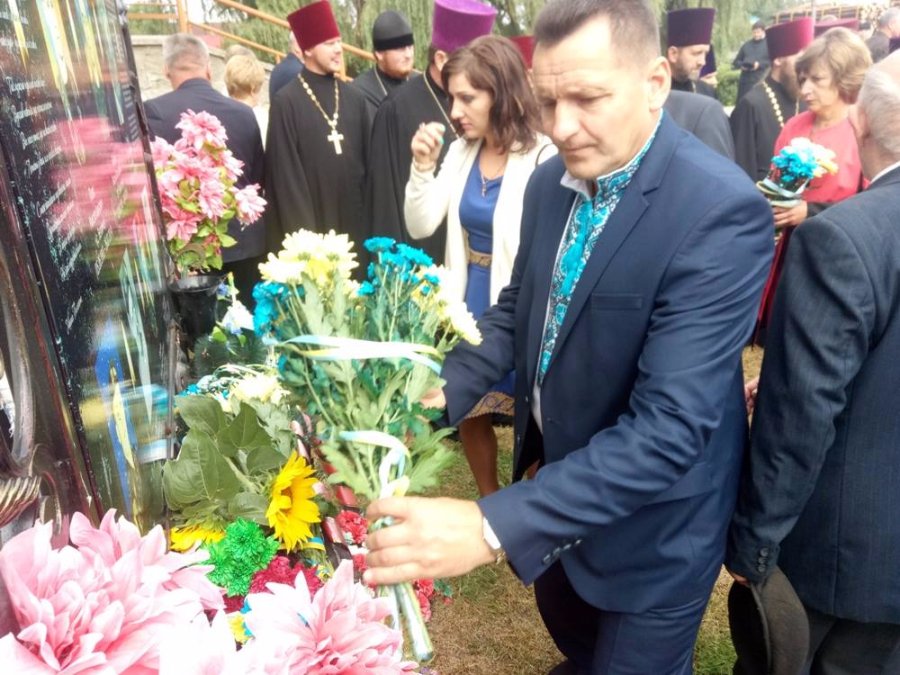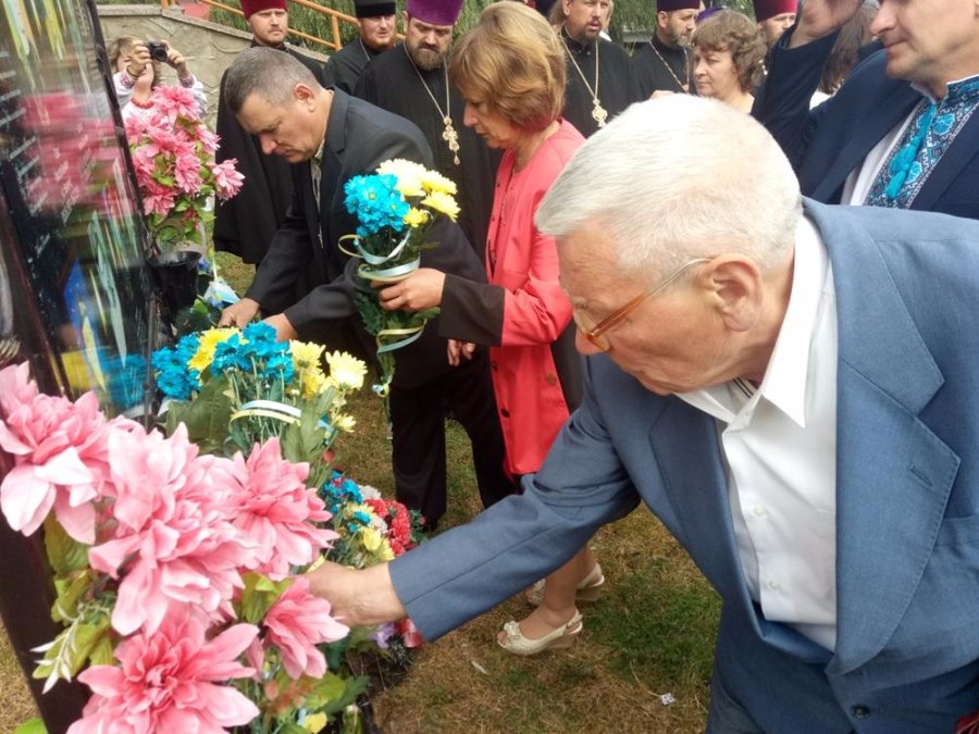 По закінченню молебню голова районної державної адміністрації Андрій Харлампович, його заступники, усі учасники заходу поклали квіти до білборду Небесної Сотні, пам’ятної дошки загиблим військовослужбовцям, пам’ятного знаку Борцям за волю та незалежність України.