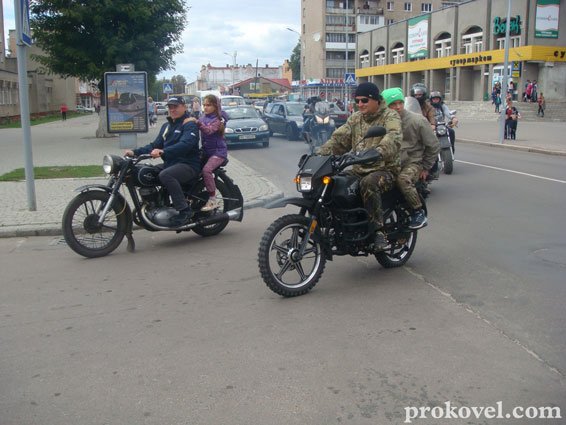 На власних ретро-красенях, прикрашених національною символікою, вони вмрушили з мікрорайону Сільмаш через вулиці Володимирська, Привокзальна площа, Ярослава Мудрого (Ковель-II), Брестська, Кияка, Черемушки, Грушевського і зупинилися на площі Героїв Майдану, що в самісінькому центрі міста, - пише ПроКовель.