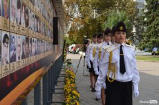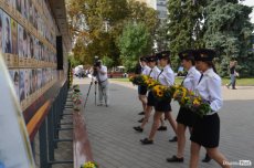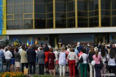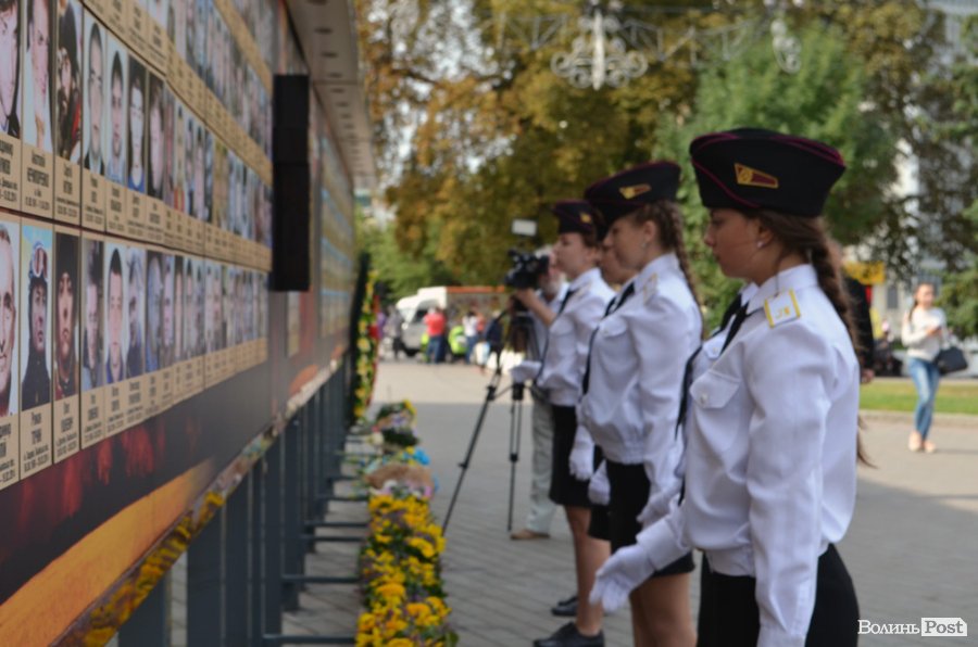 Після урочистих вітань студенти військового ліцей поклали квіти до стенду Героям Небесної сотні та загиблим на Сході бійцям.