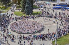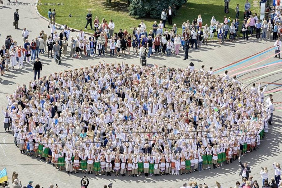Під час традиційного флешмобу люди у вишиванках створили «живий» віночок.