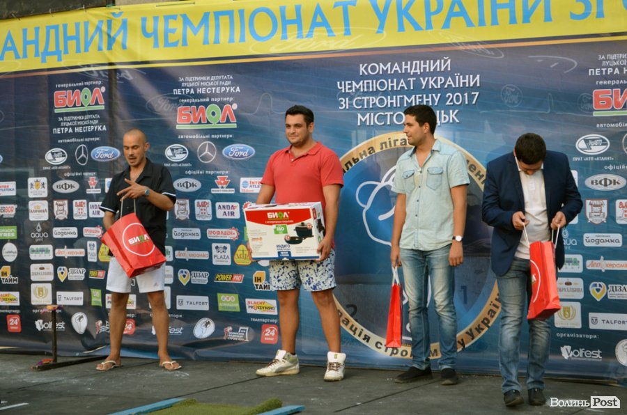 Кубки переможцям вручали співорганізатор Петро Нестерук, головний рефері Василь Вірастюк та голова Федерації стронгмену Волині Валерій Пельц.