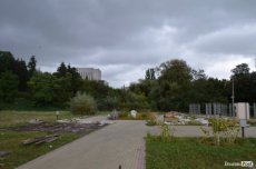 Роботи зі знесення низки тимчасових споруд, стартували ще минулого тижня. Наразі на відгородженій території розібрали вагончики, тож залишилася лише будка на вході. Щоправда, сьогодні на території робітників немає, а огорожа зачинена.