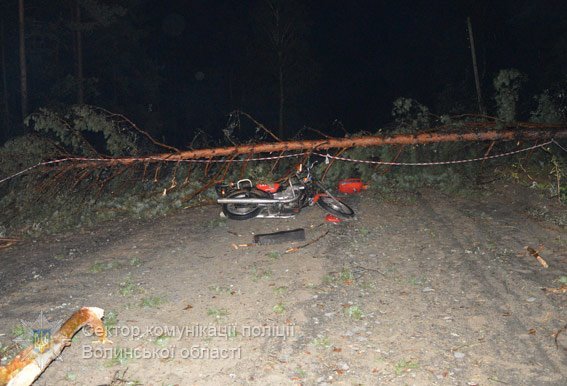 Так, у ніч на 28 серпня близько 23 години мотоцикл Jawa, за кермом якого був 31-річний житель Маневицького району, врізався в повалене над дорогою буревієм дерево. Внаслідок автопригоди водій загинув на місці. 20-ти та 21-річний пасажири транспортного засобу отримали тілесні ушкодження.