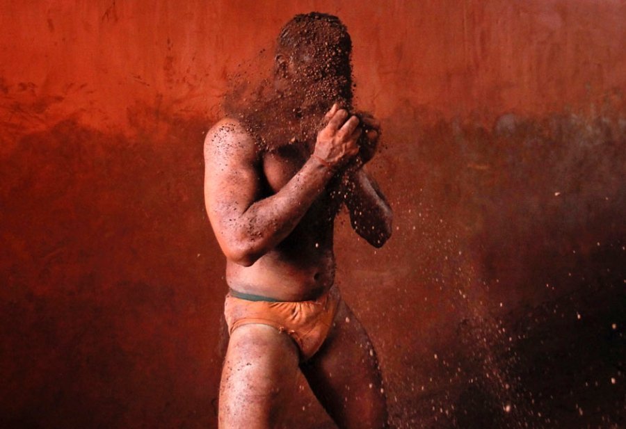 58. Борець обтирає руки глиною, щоб вони не ковзали через піт під час традиційного матчу з боротьби в грязюці в Кольхапуре, приблизно за 400 км на південь від Мумбаї, Індія, 14 лютого. ( DANISH SIDDIQUI)