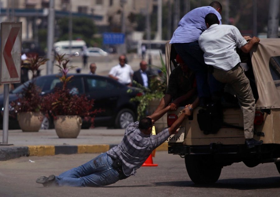 90. Сирійський солдат кричить від болю після поранення в ногу шрапнеллю від снаряда сирійського танка в Алеппо 7 серпня. (GORAN TOMASEVIC)
