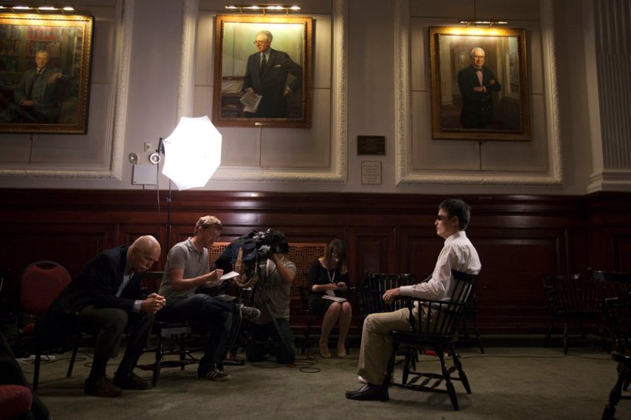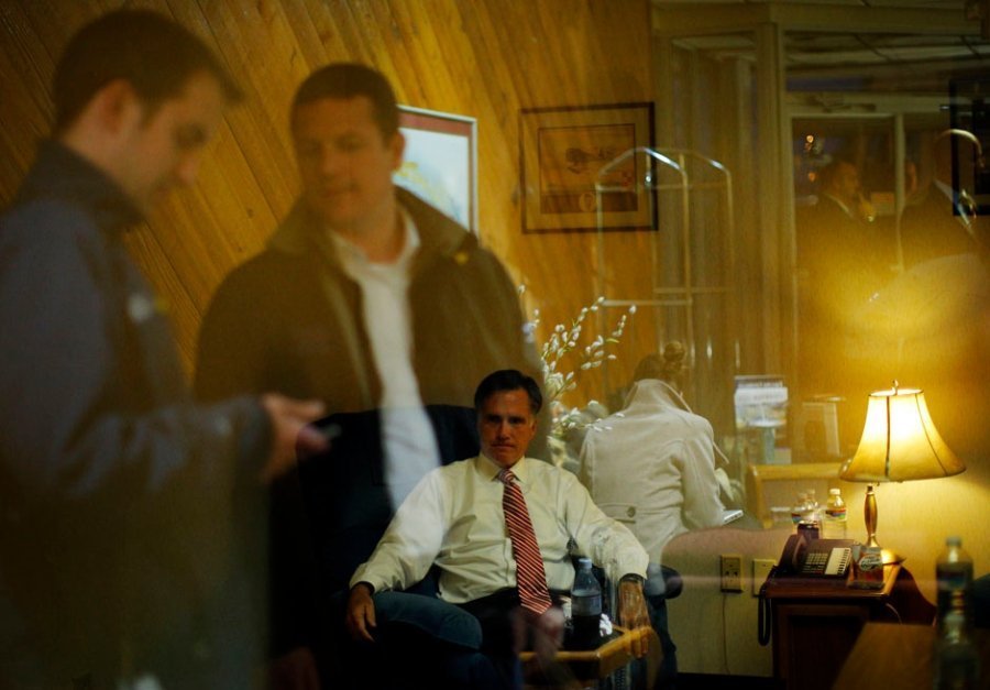 92. Працівники офісів біля кімнати, де сидить кандидат в президенти США Мітт Ромні в Північному Кантоні, штат Огайо, 26 жовтня. (BRIAN SNYDER)