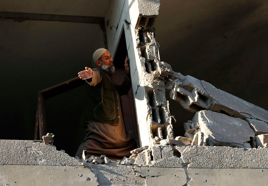 1. Палестинець обходить свій напівзруйнований будинок після повітряного обстрілу в Газі 15 листопада. (SUHAIB SALEM)
