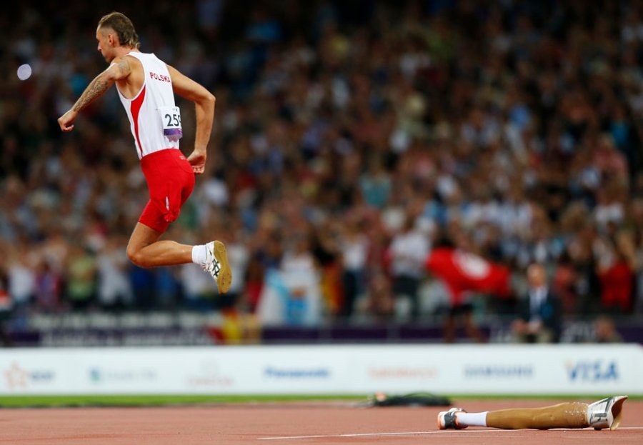 42. Поляк Лукаш Мамкзарц розігрівається перед стрибками в довжину на Параолімпійських іграх у Лондоні 3 вересня. (ANDREW WINNING)