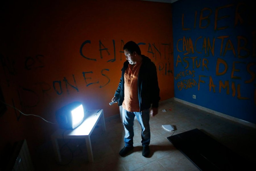 49. 43-річний Хуан Карлос Кастано включив телевізор в своїй порожній кімнаті в очікуванні рішення суду про його виселення в Мадриді 28 вересня. Іспанець, який прибув з рідної Колумбії в Іспанію в 2000 році, припинив виплачувати іпотеку в кінці 2009 року, коли став безробітним. (SUSANA VERA)