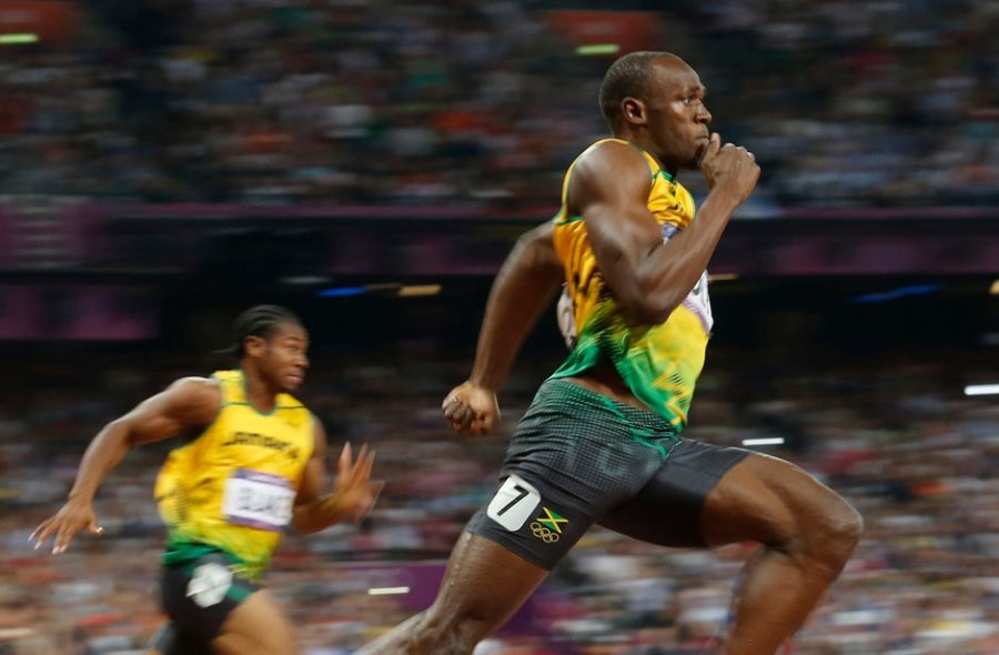 62. Ямайський бігун Усейн Болт біжить до своєї перемоги в забігу на 200 метрів у фіналі Лондонських Олімпійських ігор 9 серпня. (STEFANO RELLANDINI)