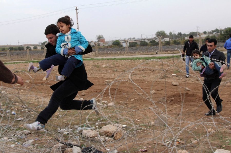 67. Сирійці перестрибують через колючий дріт, тікаючи з міста Рас-аль-Айн на турецькому кордоні 9 листопада. (STRINGER)