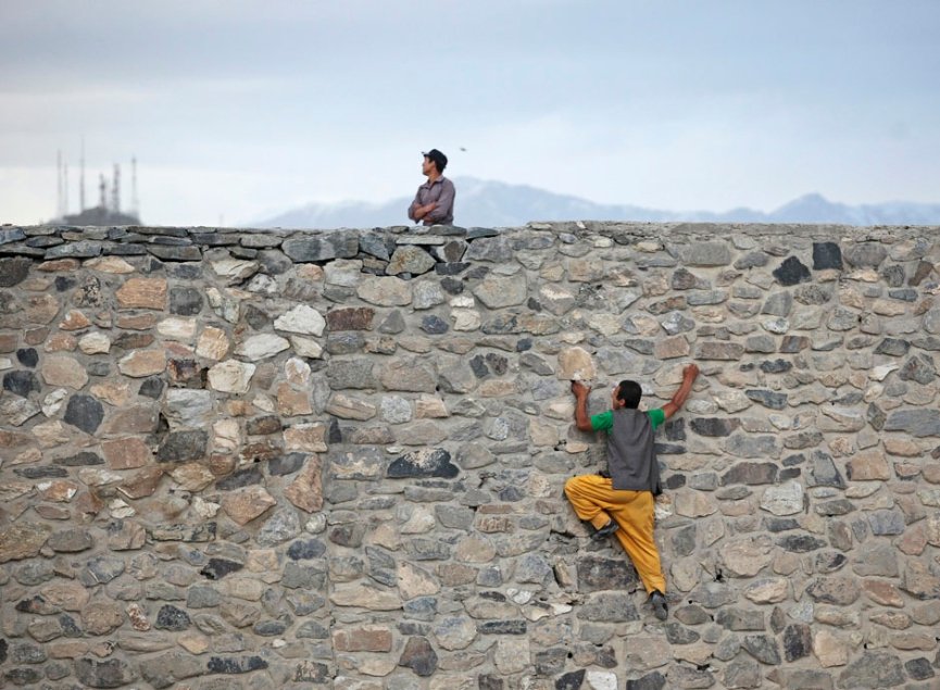 25. Афганець лізе по стіні, скорочуючи шлях на гору в Кабулі, 11 травня. (DANISH SIDDIQUI)