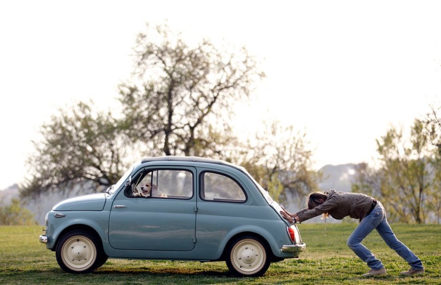 53. Жінка штовхає свій Fiat 500 зі своїю собачкою всередині в одному з районів Риму 23 березня. (ALESSANDRO BIANCHI)