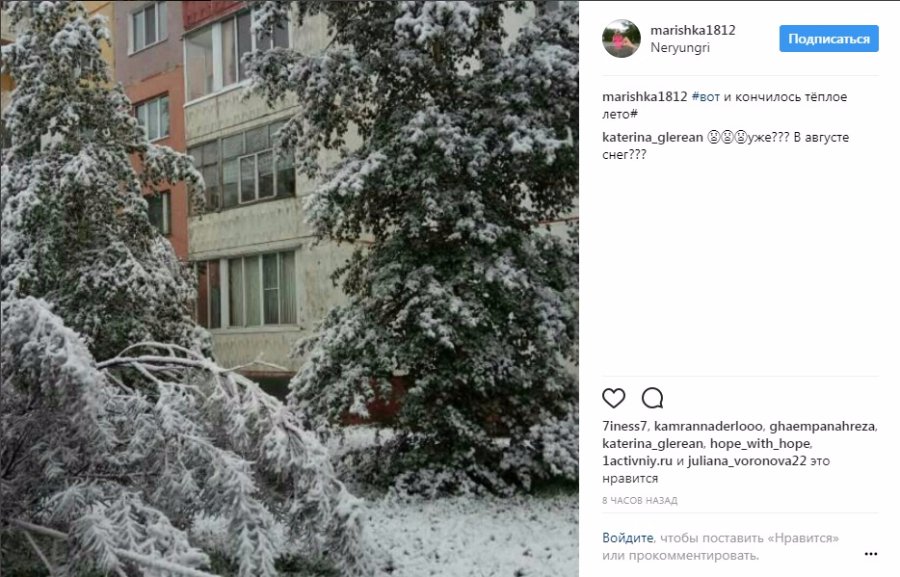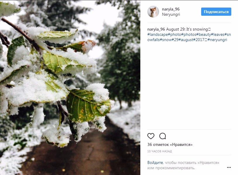 29 серпня в місті Нерюнгрі в Якутії (Росія) випав перший сніг.