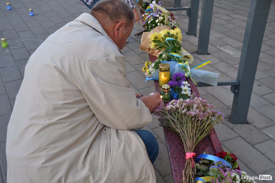 У Луцьку вшанували бійців, які загинули під час Іловайської трагедії. Декілька десятків лучан прийшли до стенду «Загинули за єдність України», аби віддати шану полеглим героям.