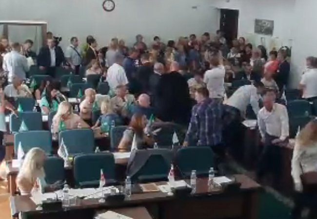 Про те це не задовольнило людей і вони почали вигукувати "Ганьба!" та заблокували вхід у сесійну залу. Вони вимагають переглянути рішення щодо ділянок.